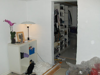 Samtidig mener min kære husbond at tiden nu er kommet til soveværelset, som skal have udnyttet skunken til et større skab. Problemet ligger bare i, at så skal det eksisterende skab tømmes - iøvrigt sammen med det øvrige soveværelse og hvor fan... skal det være henne.......Det kræver vist lidt arbejde med mit "ikke-rode-gen" - eller måske jeg skulle tage et par skyklapper på......
